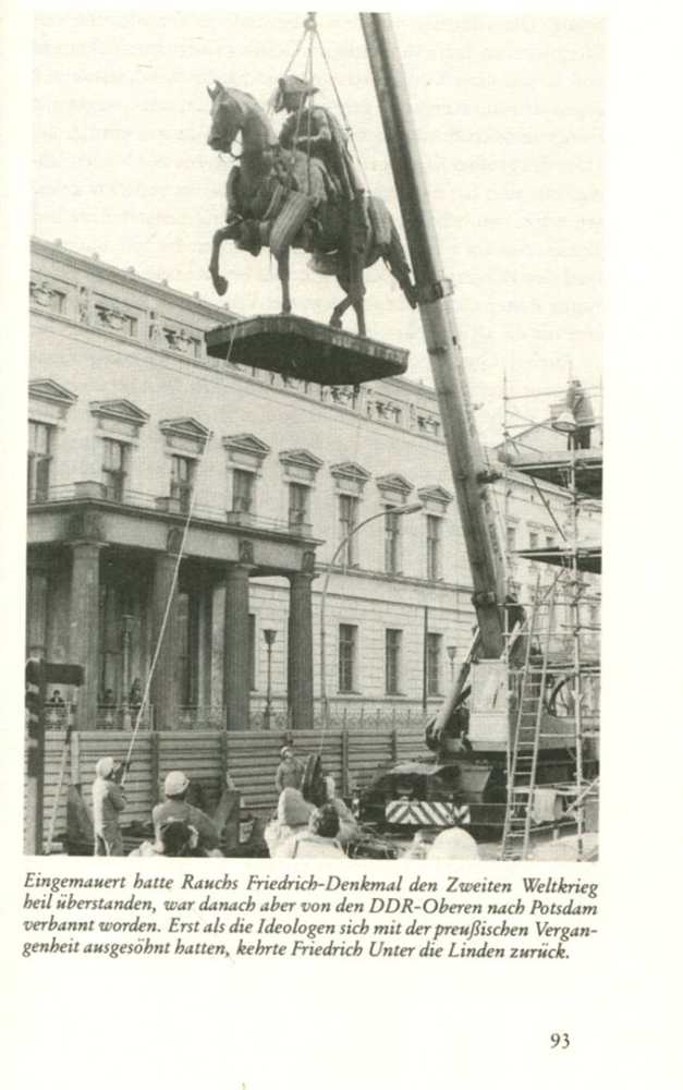 Das ist die Geschichte der Berliner Haupt- und Prachtstraße Unter den Linden" und zugleich eine Geschichte Berlins und Preußens. Sie fängt im 17. Jahrhundert im Osten, am Schloß, an und endet 1989 im Westen, am Brandenburger Tor, mit der Wiedervereinigung Deutschlands. Vom Osten zum Westen hin fortschreitend, so wie die Bebauung der Linden" stattfand, erfährt der Leser Wissenswertes über die Bauwerke, ihre Bewohner und ihre Entstehungszeit. Für Berlin-Liebhaber, die mehr an Geschichte und geistigem Leben Berlins als an zusammenhanglosen Kuriositäten interessiert sind, ist das Buch eine Fundgrube und Beglückung; Anekdotisches fehlt nicht, steht aber nicht im Vordergrund. Seltene Fotos und Reproduktionen von Gemälden bereichern den Inhalt noch mehr. Als Sachbuch deshalb hervorragend gelungen! Keine der Straßen Berlins verbindet man bis heute so sehr mit der Geschichte Preußens und seiner Hauptstadt wie Unter den Linden. Der unheilbare Flaneur" (NZZ) Günter de Bruyn führt uns auf die ihm eigene, unnachahmliche Weise durch die bewegte Vergangenheit des Boulevards und seiner Bewohner. Der literarische Spaziergang führt vom Lustgarten über das Fridericianum (lat. für Friderizianisches Forum) bis zum Hotel Adlon und zum Pariser Platz. Durch Geschichten, die sich mit Bauten und Bäumen verbinden, macht de Bruyn einige Jahrhunderte preußisch-deutscher Geschichte lebendig. 2. Auflage 2002, Siedler Verlag, Berlin, Ganzleinen mit SU und rotem Lesebändchen, Festeinband gebunden, 192 Seiten mit zahlr. s/w Bilder und Abb., Zustand: I