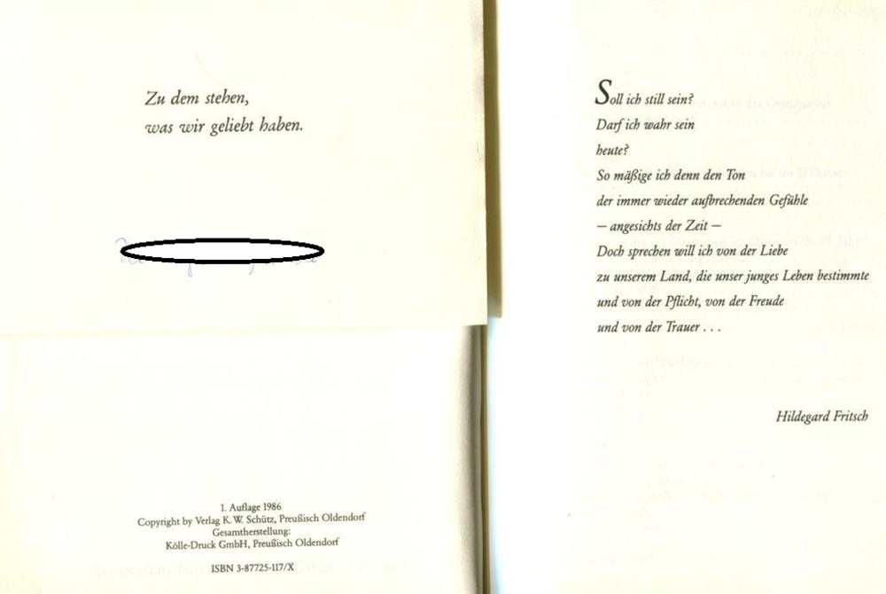 Dieses von hoher idealistischer Einsatzbereitschaft zeugende und mit anschaulichen Dokumentationen versehene Werk zwingt zum Nachdenken und gehört in die Hände von jung und alt. Es gewährt einen tiefen Einblick in die freiwillige Landdienstarbeit und in die Arbeit des Osteinsatzes des Bundes Deutscher Mädel im Rahmen der Siedlungsbewegung, in der die Verfasserin in ihren jungen Jahren als BDM-Führerin selbst tätig war. Diese Dokumentation ist nicht nur ein mit Erlebnisberichten aus dem BDM-Osteinsatz und dem Landdienst angereicherter Beitrag zur geschichtlichen Wahrheit, sondern gibt dem Leser darüber hinaus einen Gesamtüberblick über die wechselvolle Geschichte deutscher Ostgebiete und die kulturellen Entwicklungen im osteuropäischen Raum. 1986, Verlag K. W. Schütz, Preussisch Oldendorf, Ganzleinen mit Kunstlederprägung und SU, Festeinband gebunden, 175 Seiten mit zahlr. s/w Fotos und Abb., SU leicht bestoßen, extra Zettel mit Widmung und Signatur der Autorin, Innenseiten sehr gut, Zustand: I-II