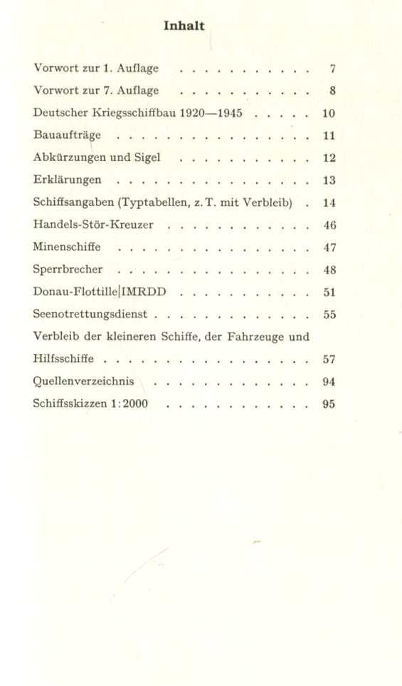 Mit 228 Schiffsskizzen, Bearbeitet von Dieter Jung und Martin Maass, mit 62 neuen Skizzen von Franz Mrva, Eberhard Rössler und Michael Wünschemann. Die folgenden Seiten enthalten alle eigenen Schiffe und Fahrzeuge der K.M. und Luftwaffe sowie pauschal die Kriegsverluste der Hilfsschiffe im Kriegsdienst. Der "Verbleib" stellt in seiner konzentrierten Kürze und Übersichtlichkeit wohl das Beste und Aussagekräftigste dar, was in dieser Form über die deutsche Kriegsmarine veröffentlicht worden ist. In dieser Neu-Auflage gibt es zahlr. neue Skizzen und Aufstellungen der U-Boote, Kleinst-U-Boote und Neuaufstellung der technischen Tabellen u.v.m. 7. Auflage 1972, Lehmanns Verlag, München, Leinenstruktur mit Goldprägung, Kleinformat, Festeinband gebunden, 120 Seiten mit zahlr. s/w Abb., Zustand: I