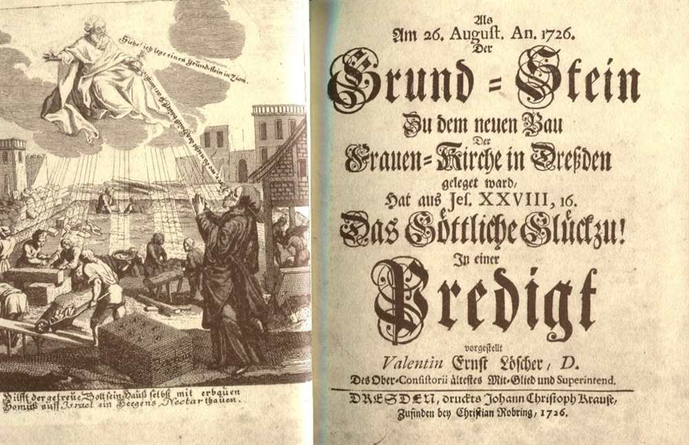 Die Frauenkirche Dresden blickt auf eine tausendjährige Geschichte zurück. Bereits die verschiedenen Vorgängerkirchen waren der Mutter Gottes geweiht und trugen den Namen Frauenkirche. Im 18. Jahrhundert entstand dann der berühmte Kuppelbau George Bährs, der zweihundert Jahre das Stadtbild Dresdens prägte. Kurz vor Ende des Zweiten Weltkrieges wurde die Kirche zerstört. Ihre Ruine verblieb als Mahnmal im Herzen der Stadt. Als am 26. August an. 1726 der Grund-Stein zu dem neuen Bau der Frauen-Kirche geleget ward, hat as Jef.XXVIII,16. Das Göttliche Glückzu! in einer Predigt vorgestellt. Faksimile nach dem von Margret und Dr. Claus Heinze, Dresden, überlassenen Original von 1726. Faksimile 1994, Lichtduck-Werkstatt Druckhaus, Dresden, Broschur bedrucktem Cellophan-Umschlag im Schuber mit Echtheitszertifikat, Exemplar-Nr.:0058 von 3.000, auf dem Schuber: mit Besitzerstempel, Zustand: I