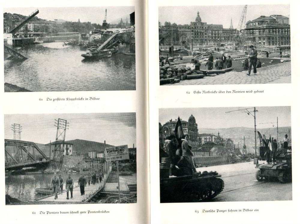 Ein Kriegsbuch des deutschen Einsatzes in Spanien - geschrieben von einem Mann, der seit Beginn des Krieges im Brennpunkt der Kämpfe stand. Der Verfasser - Oberleutnant und Kompaniechef - ausgezeichnet mit dem Spanienkreuz in Gold mit Brillanten, erzählt mit der ganzen Frische und Leidenschaftlichkeit des jungen, berufenen Soldaten. 1939, Bruckmann Verlag, München, Halbleinen mit Goldprägung und SU, Festeinband gebunden, 136 Seiten mit zahlr. s/w Bilder und Abb., Vorsatz mit Besitzerstempel, Buchblock fleckig, SU bestoßen, Zustand: II-III