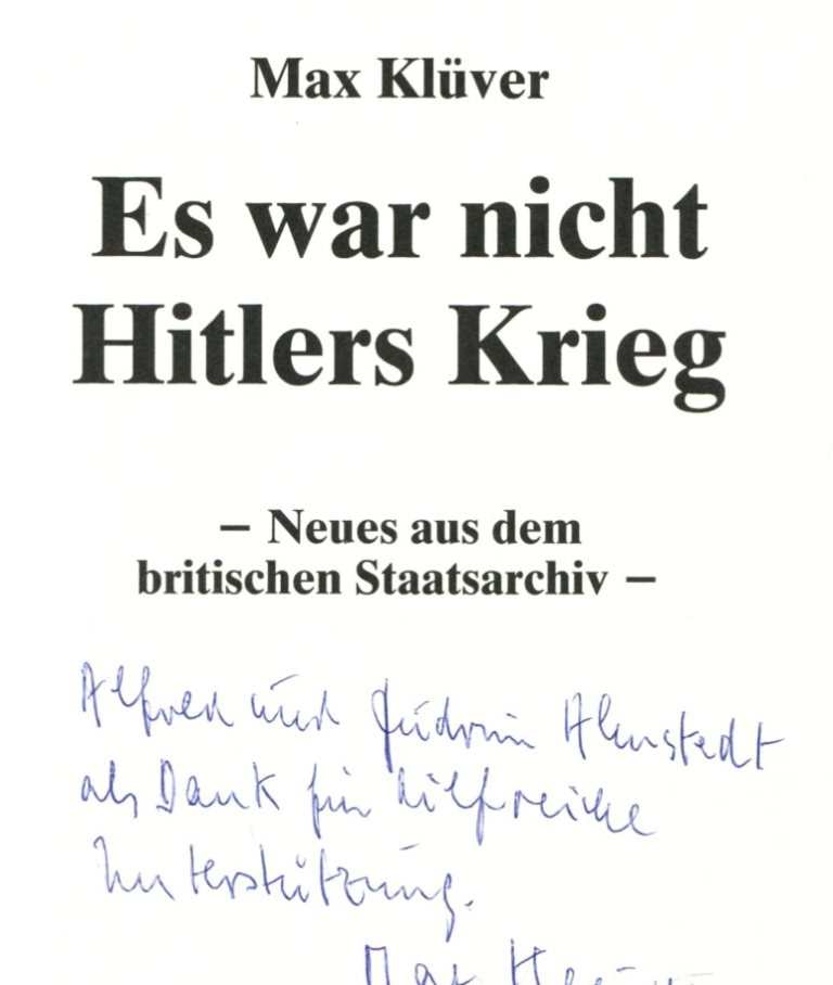 Klüver, Max: Es war nicht Hitlers Krieg - Neues aus dem britischen Staatsarchiv + Widmung und Signatur vom Autor