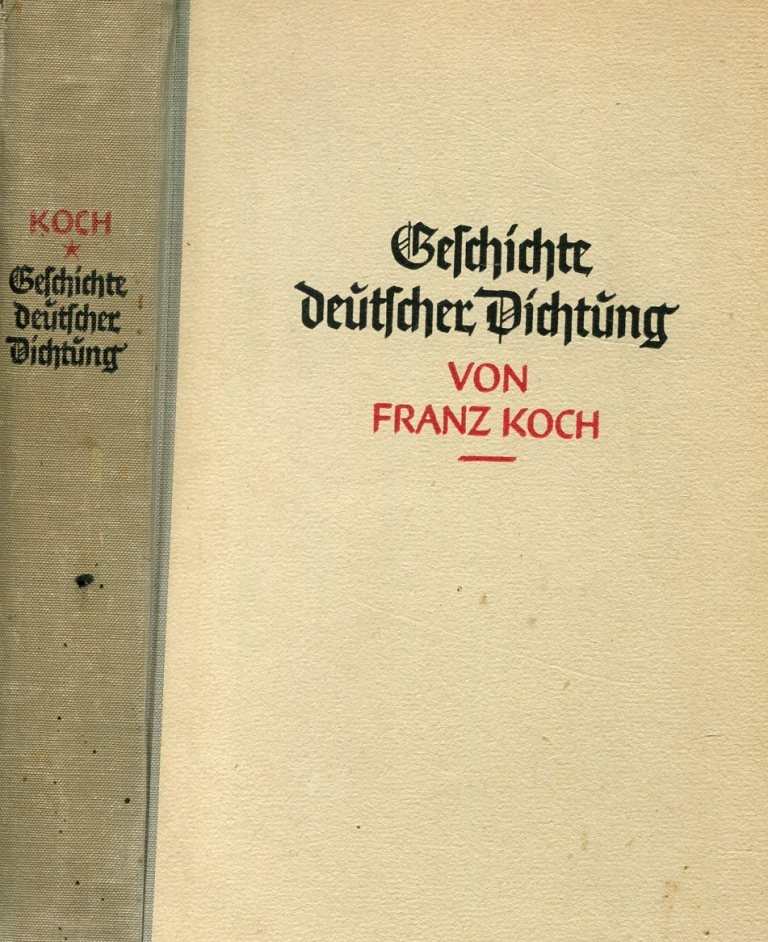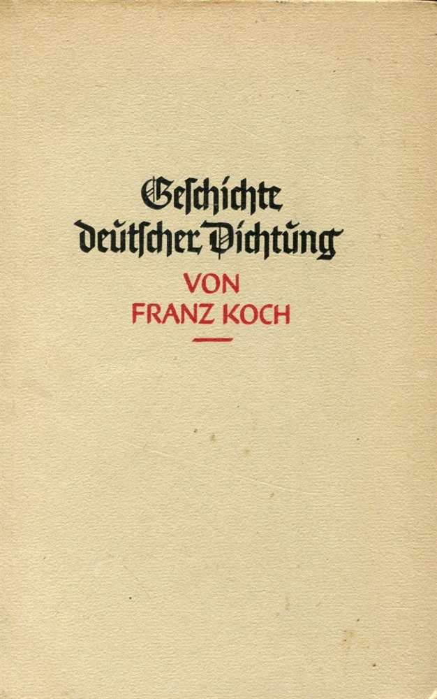 Das Buch präsentiert die Geschichte deutscher Dichtung übersichtlich, anschaulich und lebendig. Sie verfährt konsequent nach dem exemplarischen Prinzip. Fachterminologie wird nur verwendet, wenn sie für ein angemessenes Verständnis nötig ist. Der Band setzt die Schwerpunkte, die den Bedürfnissen der Unterrichtspraxis entsprechen: Die Literatur des 19. und 20. Jahrhunderts nimmt einen breiten Raum ein, die Literatur der Gegenwart sowie ihre wichtigen Autorinnen und Autoren werden besonders ausführlich dargestellt. Die Entwicklung von der althochdeutschen Frühzeit bis zum Barock wird gestrafft aufgezeigt. 4. Auflage, 23. Tausend, 1941, Hanseatische Verlagsanstalt, Hamburg, Halbleinen, Festeinband gebunden, 373 Seiten, Vorsatz mit Name, Einband leicht bestoßen, Zustand: I-II