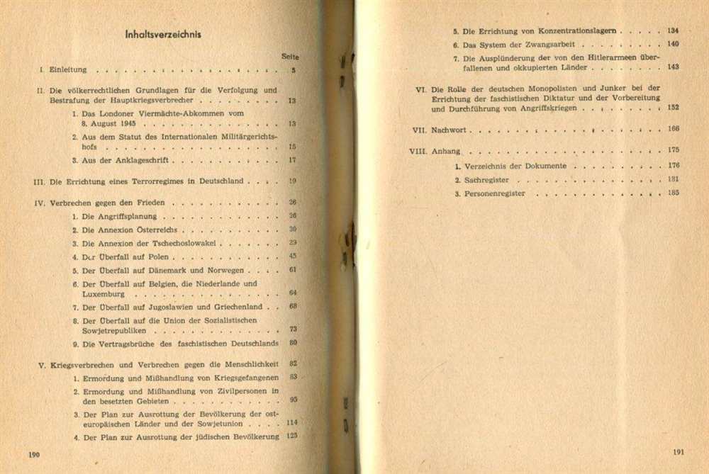 Die Anklageschrift wurde am 6. Oktober 1945 von den Anklägern der vier alliierten Mächte unterzeichnet. Am 18. Oktober wurde sie im Gebäude des Alliierten Kontrollrats in der einzigen Sitzung in Berlin übergeben. Die eigentlichen Gerichtsverhandlungen begannen jedoch am 20. November 1945 in Nürnberg. Sie fanden im Gerichtssaal 600 des Justizpalastes statt. Am 30. September und am 1. Oktober 1946 wurden dort auch die Urteile verkündet. Am Ort des Prozesses befindet sich heute das Memorium Nürnberger Prozesse. Vom Zellengefängnis Nürnberg, wo die Angeklagten inhaftiert waren, ist noch ein originaler Zellentrakt erhalten sowie die Gefängniskirche, in der die amerikanischen Militärpastoren tätig waren. Diese Gebäude sind Teil der JVA Nürnberg und daher nur mit einer besonderen Genehmigung zu besichtigen. Das Bayerische Justizministerium plant ihren Abriss wegen Baufälligkeit. 1956, Kongress Verlag, Berlin, Broschur gebunden, 191 Seiten, Schmutztitel mit Besitzerkürzel und Stempel: Berufsschule Roßwein, Seiten altersbedingt vergilbt, Einband bestoßen, Zustand: II-III