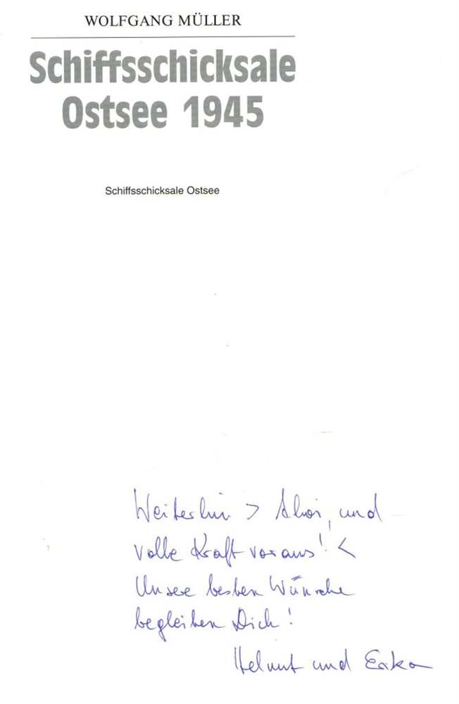 Dieses Buch zeigt Erinnerungsfotos von Zeitzeugen und Schilderungen ihrer Erlebnisse am Ende des Zweiten Weltkrieges. Die letzten 115 Tage seit dem Beginn der sowjetischen Großoffensive am 12. Januar 1945 werden wieder lebendig. Im Ergebnis des Dialogs mit Lesern konnte das Schicksal von 20 Wracks geklärt werden. Aufgrund des ständigen Kontakts mit den Zeitzeugen konnte der Autor ihre Erinnerungen an das Geschehen in diesem Seegebiet, über die größte Evakuierungsaktion in der modernen Seekriegsgeschichte bewahren. Mit unglaublicher Energie und gewohnter Akribie hat er das unveröffentlichte Bildmaterial gesammelt, bewertet und in das historische Gesamtgeschehen eingeordnet. Endstanden ist eine Zeitchronik, die die Dramatik der Ereignisse mit einer Intensität widerspiegelt, daß auch jüngere Leser beeindruckt sein werden. 1996, Koehlers Verlag, Hamburg, Schmutztitel mit Widmung, Atlas Großformat gebunden mit 179 Seiten mit zahlr. s/w Fotos und Abb., Zustand: I