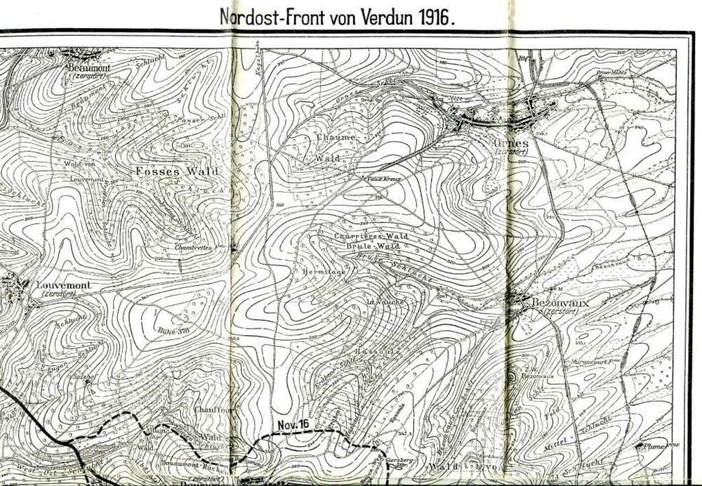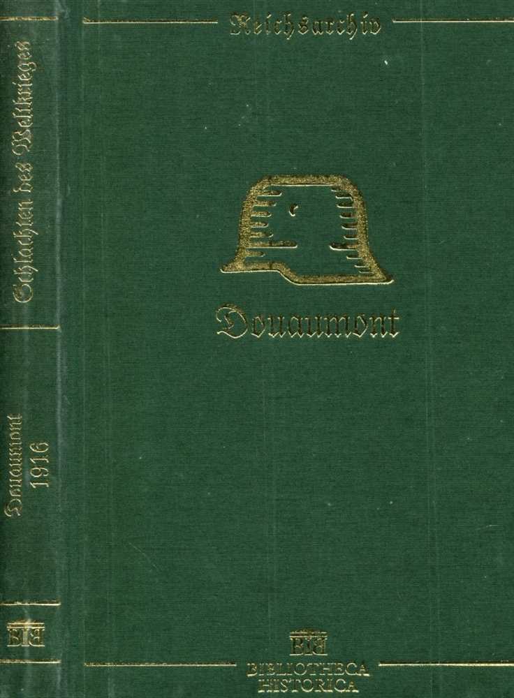 In Einzeldarstellungen bearbeitet und herausgegeben im Auftrage des Reichsarchivs. Großangriff, die Schlacht um die französische Festung Verdun. Das Fort Douaumont war das größte und stärkste Werk des äußeren Fortgürtels des französischen Festen Platzes Verdun in Lothringen und im Ersten Weltkrieg in der Schlacht um Verdun schwer umkämpft. Das Fort war Teil der äußeren Verteidigungslinie der Festung aus dem 19. Jahrhundert, die aus elf Forts und 23 Zwischenwerken bestand. Seine herausragende Rolle bei der Abwehrschlacht von Verdun hatte einen nicht zu unterschätzenden Einfluss auf den Bau der Maginot-Linie, mit der man in Frankreich in der Zeit vor dem Zweiten Weltkrieg einen Angreifer aus dem Osten aufzuhalten gedachte. Inhalt: Grabmäler, Auftakt, Maitage, Intermezzo, Bayernangriff, Herbst, Wandlung, Frontnacht, Hammer, Schicksal, Feuergürtel, Wirrwarr, Finale. 2015, Nachdruck von 1924, Bibliotheca Historica, Gerhard Stalling, Berlin, Ganzleinen gebunden, transparent privat eingeschlagen mit Goldprägung, 189 Seiten mit s/w Abb. mit 2 Karten, Zustand: I