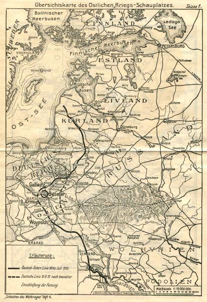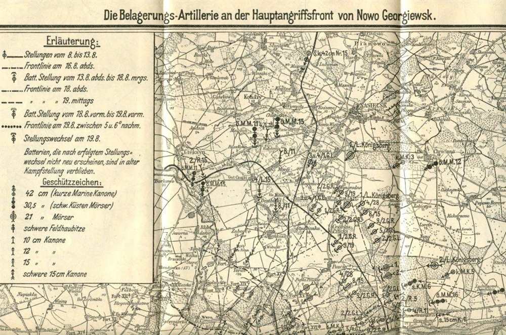 In Einzeldarstellungen bearbeitet und herausgegeben im Auftrage des Reichsarchivs, persönliche Aufzeichnungen von Mitkämpfern und einer Darstellung des Majors u. 1. Generalstabsoff. der Belagerungsarmee, v. Brunn. Da die russische Festung in relativ kurzer Zeit gefallen war, geriet der größte Teil der russischen Besatzung in deutsche Kriegsgefangenschaft. Außerdem fielen eine große Anzahl Geschütze und umfangreiche Vorräte an Munition und Lebensmitteln in die Hände der Sieger. Strategisch hatte der Sieg insofern Auswirkungen, als die Wasserstraßen der Weichsel und des Narew nun für die deutsche Militärführung nutzbar wurden, ferner auch die wichtige Eisenbahnstrecke Mława-Warschau. Die Truppen der Armeegruppe Beseler wurden nun zu anderer Verwendung frei, während das russische Heer beträchtliche Verluste erlitten hatte. 2. Auflage 1925 Band 8, Gerhard Stalling, Berlin, Halbleinen gebunden mit Goldprägung, 127 Seiten mit s/w Abb., Skizzen und Karten, Einband leicht bestoßen und leicht berieben, Innenseiten gut, Vorsatz stockfleckig, Zustand: II-IV