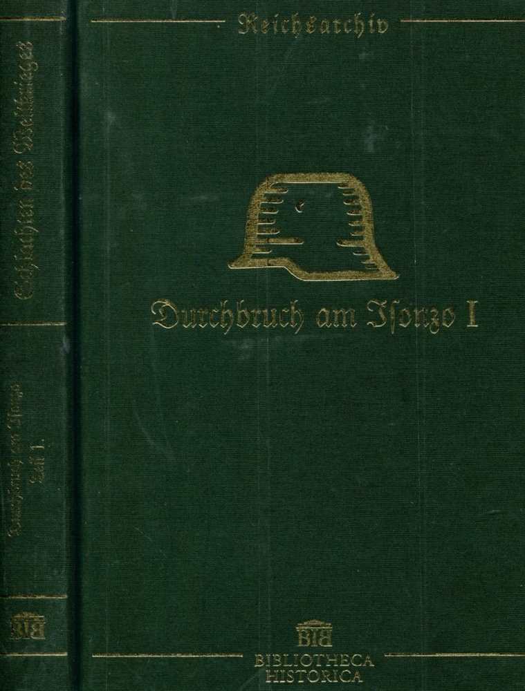In Einzeldarstellungen bearbeitet und herausgegeben im Auftrage des Reichsarchivs. Die Isonzoschlachten waren zwölf große Kampfhandlungen im Ersten Weltkrieg zwischen dem Königreich Italien und den beiden verbündeten Mittelmächten Österreich-Ungarn und dem Deutschen Kaiserreich. Die wieder mit Schwerpunkt gegen den Görzer Brückenkopf, den Nordteil der Doberdò-Hochfläche und gegen Zagora gerichteten Anstrengungen der italienischen 3. Armee waren nirgendwo von Erfolg gekrönt. Die gleichzeitig von der italienischen 2. Armee von 21. bis 24. Oktober am Oberlauf des Isonzo geführten Angriffe zwischen Flitsch und Plava brachen ebenfalls unter schweren Verlusten zusammen. Auf italienischer Seite werden die Verluste mit 62.466 Mann an Gefallenen, Verwundeten, Vermissten und Gefangenen angegeben. Die k.u.k. Truppen hatten in dieser dritten Schlacht etwa 40.000 Mann an Verlusten zu beklagen. 2016 Nachdruck der Originalausgabe von 1926, Bibliotheca Historica, Gerhard Stalling, Berlin, Ganzleinen gebunden, transparent privat eingeschlagen mit Goldprägung, 210 Seiten mit 4 Karten, 25 Bildern und 1 Anlage, Zustand: I