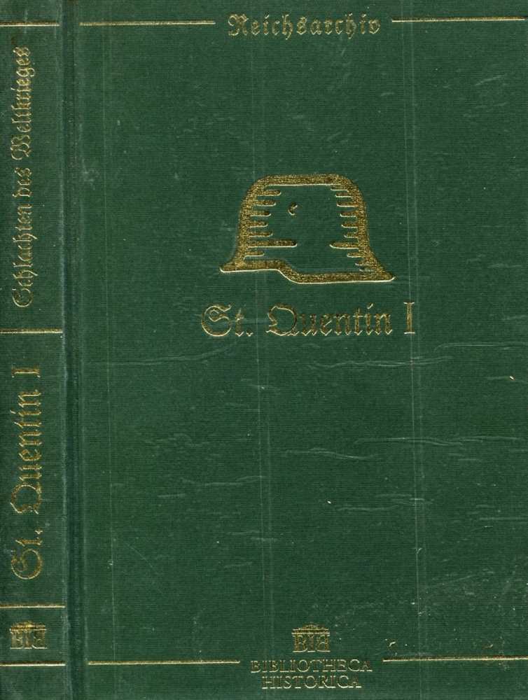 In Einzeldarstellungen bearbeitet und herausgegeben im Auftrage des Reichsarchivs. Der rechte Flügel der deutschen 2. Armee am 29. und 30. August. Die Schlacht bei St. Quentin (französisch: Bataille de Guise) war am Beginn des Ersten Weltkrieges eine Auseinandersetzung an der Westfront. An der Oise zwischen St. Quentin und Guise traf zwischen 28. und 30. August 1914 die deutsche 2. Armee unter Generaloberst Karl von Bülow auf einen überraschenden starken Gegenstoß der französischen 5. Armee unter General Charles Lanrezac. Die deutsche 2. Armee war zu Beginn der Schlacht am 28. August nach Abgabe des Garde-Reserve-Korps und des VII. Reserve-Korps (Schlacht um die Festung Maubeuge) noch etwa 230.000 Mann stark. Die französische 5. Armee war im Moment des Gegenangriffes mit fünf Korps zahlenmäßig überlegen, musste sich aber dennoch nach zweitägigen schweren Kämpfen zurückziehen. 2014, Nachdruck von 1924, Bibliotheca Historica, Gerhard Stalling, Berlin, Ganzleinen gebunden, transparent (ein paar Luftfalten) privat eingeschlagen mit Goldprägung, 213 Seiten mit s/w Abb. mit Skizzen/ Karten, Zustand: I-II
