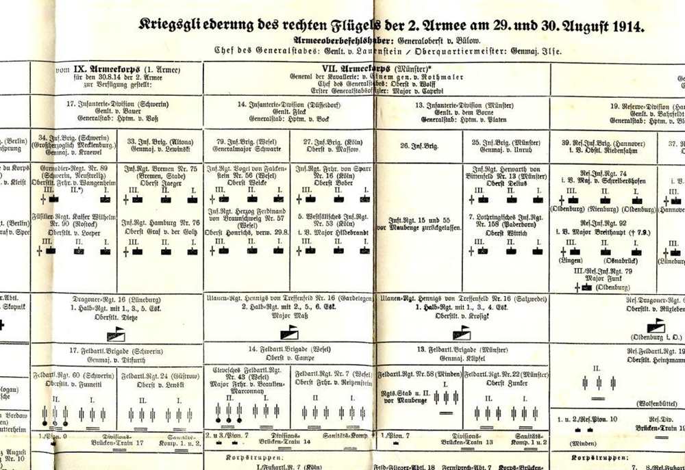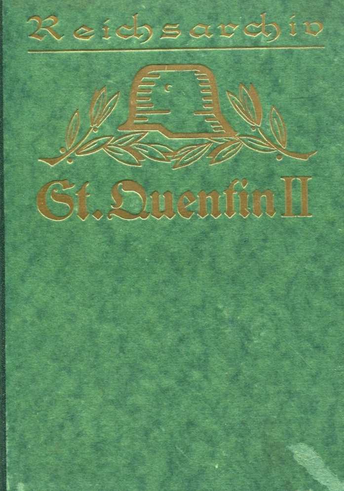 In Einzeldarstellungen bearbeitet und herausgegeben im Auftrage des Reichsarchivs. Der rechte Flügel der deutschen 2. Armee am 29. und 30. August. Die Schlacht bei St. Quentin (französisch: Bataille de Guise) war am Beginn des Ersten Weltkrieges eine Auseinandersetzung an der Westfront. An der Oise zwischen St. Quentin und Guise traf zwischen 28. und 30. August 1914 die deutsche 2. Armee unter Generaloberst Karl von Bülow auf einen überraschenden starken Gegenstoß der französischen 5. Armee unter General Charles Lanrezac. Die deutsche 2. Armee war zu Beginn der Schlacht am 28. August nach Abgabe des Garde-Reserve-Korps und des VII. Reserve-Korps (Schlacht um die Festung Maubeuge) noch etwa 230.000 Mann stark. Die französische 5. Armee war im Moment des Gegenangriffes mit fünf Korps zahlenmäßig überlegen, musste sich aber dennoch nach zweitägigen schweren Kämpfen zurückziehen. 2. Auflage 1925 Band 7b, Gerhard Stalling, Berlin, Halbleder gebunden mit Goldprägung, 251 Seiten mit s/w Abb. und Skizzen/ Karten, Einband leicht berieben, Zustand: II-III
