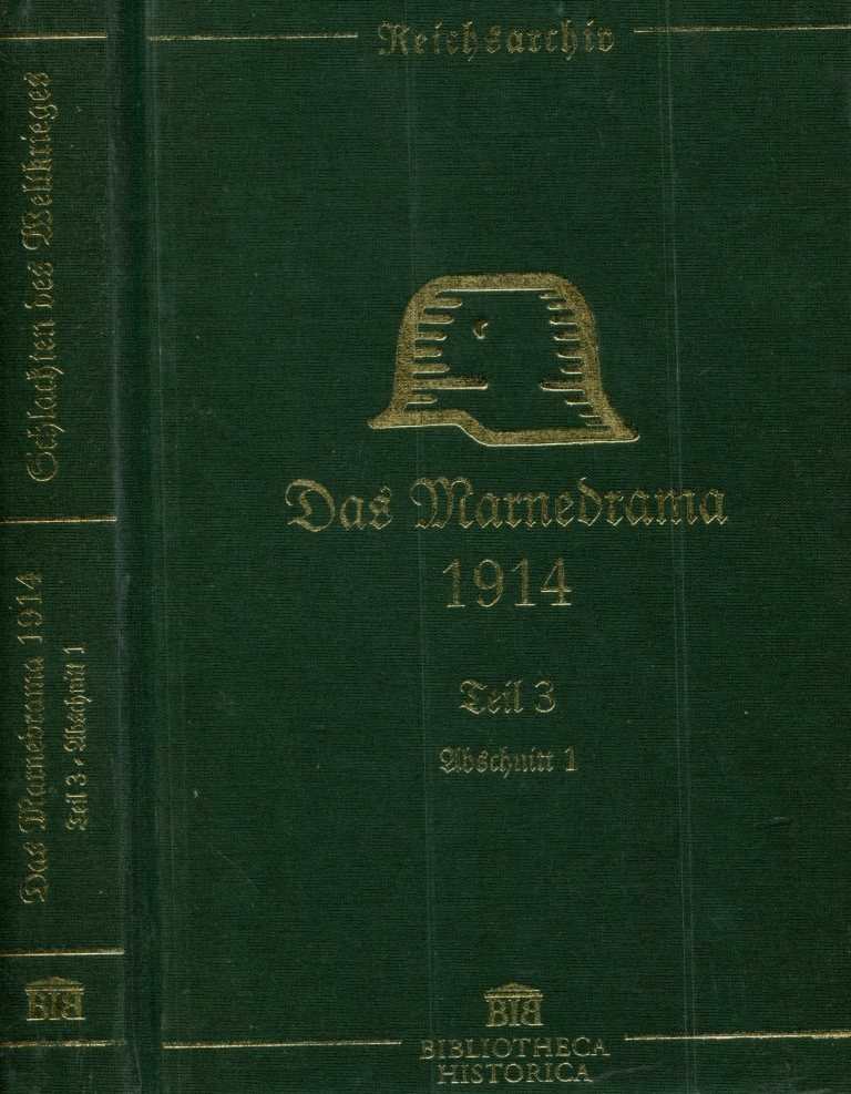 In Einzeldarstellungen bearbeitet und herausgegeben im Auftrage des Reichsarchivs. Die Kämpfe des Gardekorps und des rechten Flügels der 3. Armee vom 5. bis 8. September 1914. Im Schlachtzentrum erreichte die französische 5. Armee zwischen dem Petit Morin und Fromentières erste Einbrüche beim deutschen X. Reserve-Korps sowie beim VII. Armee-Korps. Weiter östlich eröffnete jetzt auch die französische 4. Armee bei Vitry-le-François den Angriff an der Naht zwischen der gegenüberliegenden deutschen 3. und 4. Armee. An diesem Abschnitt lieferten sich die Truppen an diesem und am folgenden Tag mit starkem Artillerieeinsatz Kämpfe mit der französischen 9. und 4. Armee in den Sümpfen von Saint-Gond und im Raum Vitry, ohne dass eine Seite entscheidend Boden gewinnen konnte. 2014 Nachdruck der Originalausgabe von 1925, Bibliotheca Historica, Gerhard Stalling, Berlin, Ganzleinen gebunden, transparent privat eingeschlagen mit Goldprägung, 266 Seiten mit s/w Abb. mit Skizzen/ Karten, Zustand: I
