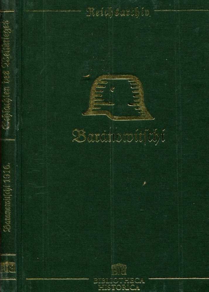In Einzeldarstellungen bearbeitet und herausgegeben im Auftrage des Reichsarchivs. Die Baranowitschi-Offensive oder auch die Schlacht von Baranowitschi in Weißrussland führte im Juli 1916 zu einer verlustreichen Niederlage der Kaiserlich russischen Armee. Die Kampfräume der Baranowitschi-Offensive und der Brussilow-Offensive wurden durch die Prypjatsümpfe getrennt, die von beiden Seiten mit geringem Truppenaufwand zu halten und für weitreichende und umfassende militärische Aktivitäten ungeeignet waren. Am 5. Juli konnte auch beim Landwehrkorps nach der Wiedergewinnung der verlorenen Darowohöhe die Lage als wiederhergestellt betrachtet werden. Am 7. Juli wies die bei Kraschin-Odochowschschina angegriffene 4. Landwehr-Division die gegnerischen Durchbruchversuche ab. Zwischen 25. und 29. Juli 1916 erneuerten die russischen Truppen ihre Angriffe, welche von der 3. Landwehr-Division abermals abgeschlagen werden konnten. Nachdruck der Originalausgabe von 1924, Bibliotheca Historica, Gerhard Stalling, Berlin, Ganzleinen gebunden, transparent privat eingeschlagen mit Goldprägung, 76 Seiten mit s/w Abb. mit Skizzen/ Karten, Zustand: I-II