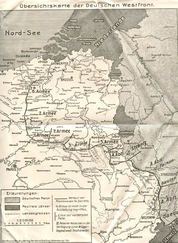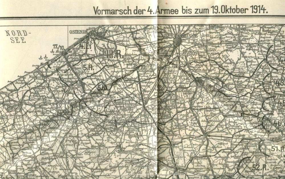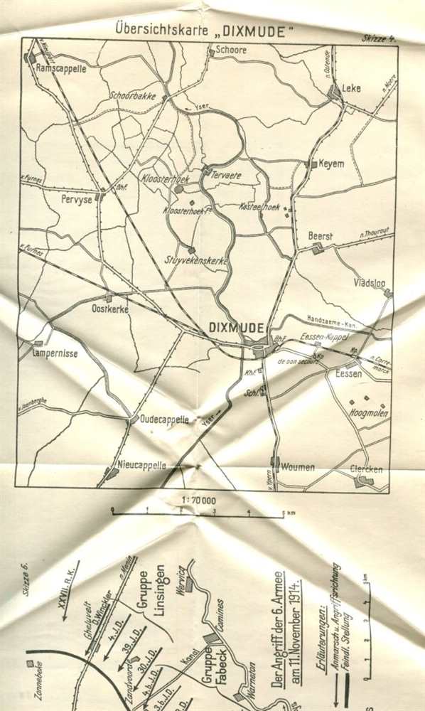 In Einzeldarstellungen bearbeitet und herausgegeben im Auftrage des Reichsarchivs. Die Erste Flandernschlacht oder Ypernschlacht fand gegen Ende der ersten Phase des Ersten Weltkrieges vom 20. Oktober bis zum 18. November 1914 zwischen deutschen und alliierten Truppen im Raum der belgischen Kanalküste in Westflandern statt. Trotz schwerster Verluste an Menschenleben konnte die Absicht der deutschen Führung, durch einen Angriff der 4. Armee entlang der Kanalküste das britische Expeditionskorps von seinen Versorgungslinien abzuschneiden, nicht verwirklicht werden. Die Auseinandersetzung wird zu den vier Flandernschlachten gezählt. Der Wettlauf zum Meer" war beendet und beide Seiten hatten rechtzeitig ausreichend Truppen verlagern können; dementsprechend hoch waren die jeweiligen Verluste. Nun war es keiner Seite mehr möglich, die feindlichen Linien zu durchbrechen. Der Krieg verlief bis fast zum Ende in einem äußerst zermürbenden Grabenkrieg. Dem Weltkriegswerk des Reichsarchivs ist zu entnehmen, dass für die etwa einen Monat dauernde Erste Flandernschlacht nur unvollständige Verlustangaben vorliegen. Danach haben die beiden beteiligten deutschen Armeen, die 4. und 6. Armee, in diesem Zeitraum mindestens 100.000 Mann verloren. 1925 Band 10, Gerhard Stalling, Berlin, Halbleinen gebunden mit Goldprägung, 223 Seiten mit s/w Abb. und Skizzen/ Karten(faltig), Einband bestoßen und berieben, Innenseiten gut, Schmutztitel mit Stockflecken, Buchrücken löst sich leicht, Zustand: III-IV