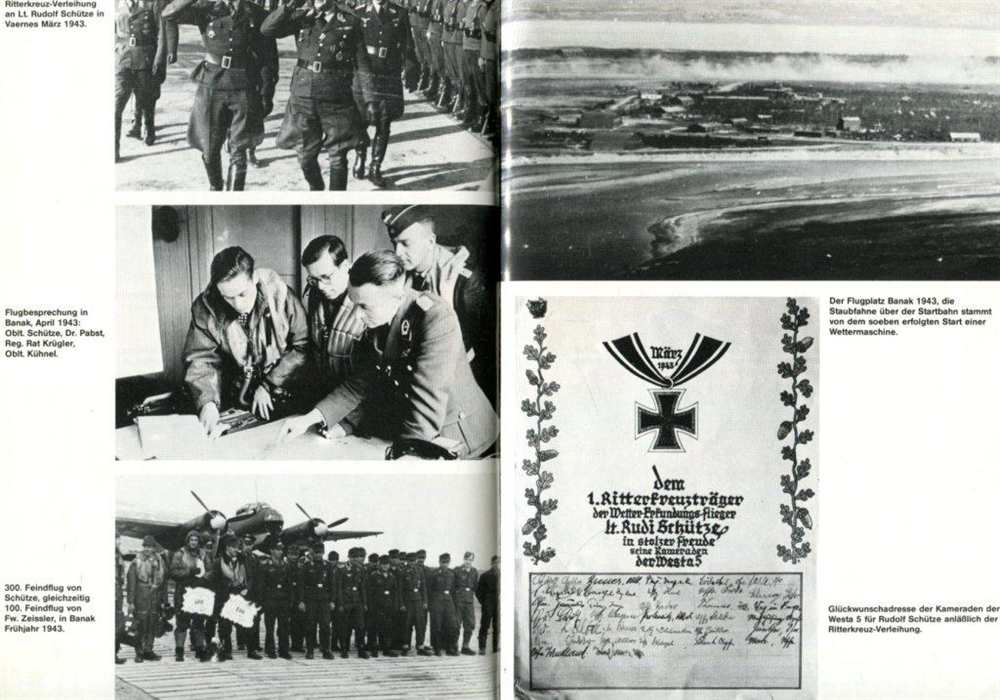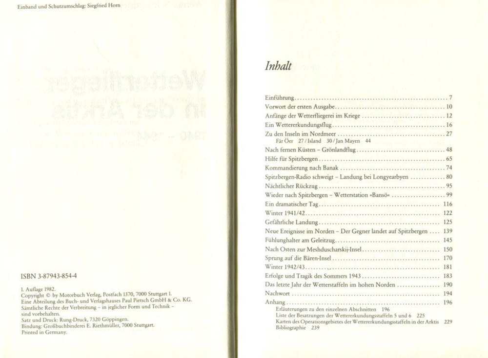 Aus dem Tagebuch von Flugkapitän Olt. Rudolf Schütze " Erlebnisse und Erfahrungen der Wettererkundungs-Staffeln im Hohen Norden". Tolles Buch über ein sehr spezielles Thema der deutschen Fliegerei. In dieser Lektüre werden die zum Teil sehr abenteuerlichen Einsätze sehr gut beschrieben. Ebenfalls wird auf viele interessante Details eingegangen, wie die Wetterstationen, Transportflüge, Spezialeinsätze und vieles mehr u.v.m. Einmalige (Farb-)Aufnahmen aus den Einsätzen runden das Ganze ab. Dieses Buch ist absolut empfehlenswert! 1982, Motorbuch Verlag, Stuttgart, Ganzleinen mit SU, Festeinband gebunden, 239 Seiten mit zahlr. farbigen und s/w Bilder und Abb., wenige Anstreichungen, Vorsatz mit Notizen, SU leicht bestoßen, Zustand: I-II