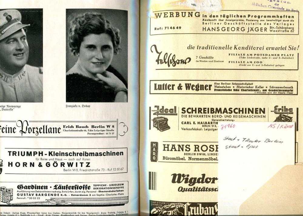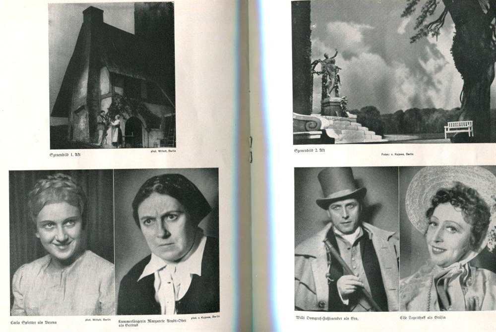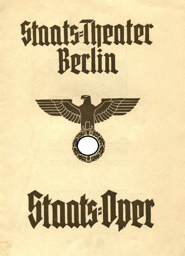 Im April 1928 eröffnete die Lindenoper nach einem völligen Umbau des Bühnenhauses, bei dem eine Drehbühne sowie Unter- und Seitenbühnen eingebaut wurden, das Haus mit einer Neuinszenierung der »Zauberflöte«. Im selben Jahr gaben Fjodor Schaljapin und das Diaghilew-Ballett unter Ernest Ansermet Gastspiele in der Staatsoper. Staatskapellmeister während des Dritten Reiches waren Robert Heger, Johannes Schüler und Herbert von Karajan, unter dessen Leitung 1944 die erste Stereoaufnahme entstand. Schon seit dem Ende des Wilhelminischen Kaiserreiches widmete sich die Lindenoper verstärkt zeitgenössischen Komponisten. So wurde 1925 Alban Bergs »Wozzeck« in Anwesenheit des Komponisten unter der Leitung von Erich Kleiber uraufgeführt. Letzterer leitete 1930 auch die Uraufführung von Darius Milhauds »Christoph Kolumbus« und 1934 der sinfonischen Stücke aus Alban Bergs »Lulu«. 1938 folgte die Uraufführung von Werner Egks »Peer Gynt«, die der Komponist selbst dirigierte. Im zweiten Weltkrieg wurde das Opernhaus zweimal durch Bomben komplett zerstört. Während es beim ersten Mal rasch wieder aufgebaut wurde, zog sich die Neuerrichtung nach der zweiten Zerstörung hin. Beide Male, 1942 wie 1955, wurde die Deutsche Staatsoper Berlin, wie sie sich seit 1945 nennt, mit Wagners »Die Meistersinger von Nürnberg« wieder eröffnet. Programmtext: 1939, Max Beck Verlag, Leipzig, Broschur, 32 Seiten mit zahlr. s/w Fotos und Abb., Papier der Innenseiten z.T. gebräunt aber guter Zustand, Stempel auf Vorsatz und Rückeinband, Zustand: II-III