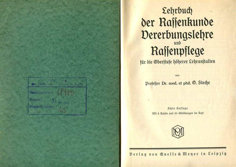 Steche, Otto: Lehrbuch der Rassenkunde, Vererbungslehre und Rassenpflege