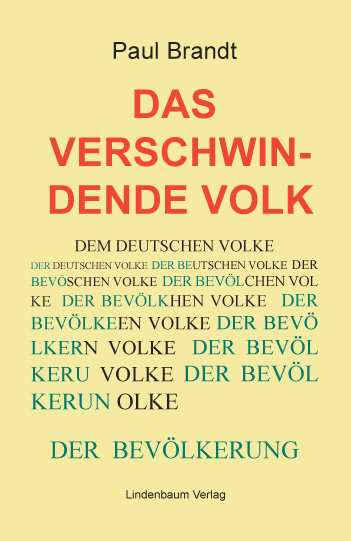 Auf der Grundlage umfassender Geschichtskenntnisse geht Paul Brandt dem Phänomen des drohenden Verschwindens des deutschen Volkes nach. Eindringlich legt er dar, dass die Deutschen ihre Identität als Volk bereits weitgehend verloren haben und wegen einer zu niedrigen Geburtenrate vom Aussterben bedroht sind bzw. dass sie durch die von der Politik und den Medien bewirkte Masseneinwanderung von Angehörigen außereuropäischer Kulturkreise zur bedeutungslosen Minderheit im eigenen Land zu schrumpfen drohen. Mit dieser niederschmetternden Erkenntnis lässt der Autor den Leser dann jedoch nicht allein. Stattdessen zeigt er in den letzten Kapiteln seines Buches Möglichkeiten auf, wie das allmähliche Verschwinden eines der für die kulturelle Vielfalt Europas bedeutendsten Völker kurz vor dem endgültigen Niedergang noch gestoppt werden könnte. Dies unterscheidet sein Werk wohltuend von etlichen vergleichbaren Publikationen zur angesprochenen Problematik. 350 Seiten, Broschur