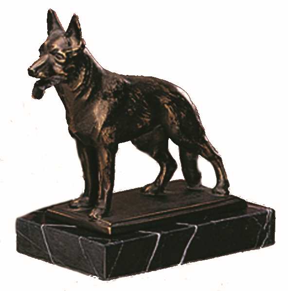 Bronzereplik Deutscher Schäferhund auf edlem Marmorsockel. Ein echter Blickfang! Höhe: 15 cm