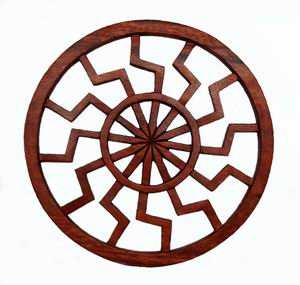 Schwarze Sonne aus Holz, handgeschnitzt, groß
