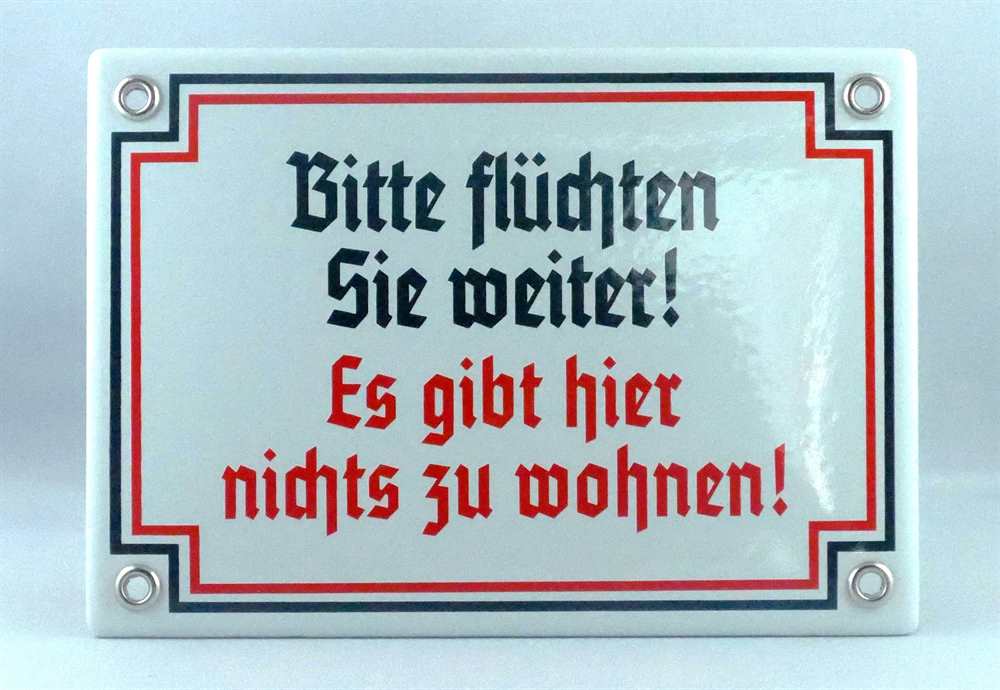 Hochwertiges Emailleschild. Das Schild kann mit 4 Schrauben angeschraubt werden. Die Schraublöcher sind mit Messingringen ausgelegt. Wetterfest, UV - beständig, leicht gewölbt, bombiert. Aufwendige handwerkliche schablonierte Ausführung. Dieses hochwertige Schild wird Ihnen viele Jahre Freude bereiten. Größe: 12 cm x 17 cm