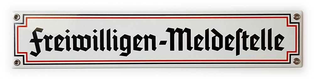 Hochwertiges Emailleschild. Das Schild kann mit 4 Schrauben angeschraubt werden. Die Schraublöcher sind mit Messingringen ausgelegt. Wetterfest, UV - beständig, leicht gewölbt, bombiert. Aufwendige handwerkliche schablonierte Ausführung. Dieses hochwertige Schild wird Ihnen viele Jahre Freude bereiten. Größe: 8 cm x 40 cm
