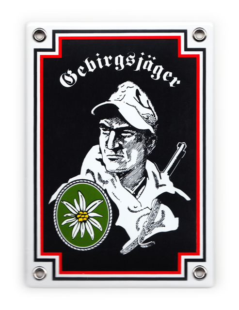 Hochwertiges Emailleschild. Das Schild kann mit 4 Schrauben angeschraubt werden. Die Schraublöcher sind mit Messingringen ausgelegt. Wetterfest, UV - beständig, leicht gewölbt, bombiert. Aufwendige handwerkliche schablonierte Ausführung. Dieses hochwertige Schild wird Ihnen viele Jahre Freude bereiten. Größe: 12 cm x 17 cm