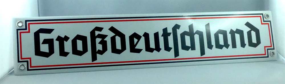 Hochwertiges Emailleschild. Das Schild kann mit 4 Schrauben angeschraubt werden. Die Schraublöcher sind mit Messingringen ausgelegt. Wetterfest, UV - beständig, leicht gewölbt, bombiert. Aufwendige handwerkliche schablonierte Ausführung. Dieses hochwertige Schild wird Ihnen viele Jahre Freude bereiten. Größe: 8 cm x 40 cm