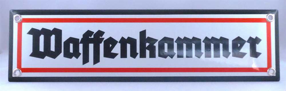 Emailleschild Waffenkammer