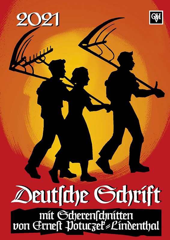 Ein wunderschöner Hauskalender mit vielen herrlichen Sinnsprüchen und Losungen in deutscher Schrift. Ein besonderer Blickfang sind die überragenden Scherenschnitte mit volkstümlichen Motiven von Familie, Bauern- und Soldatentum des beliebten sudetendeutschen Künstlers Ernest Potuczek-Lindenthal. 14 Blatt, 21 x 30 cm