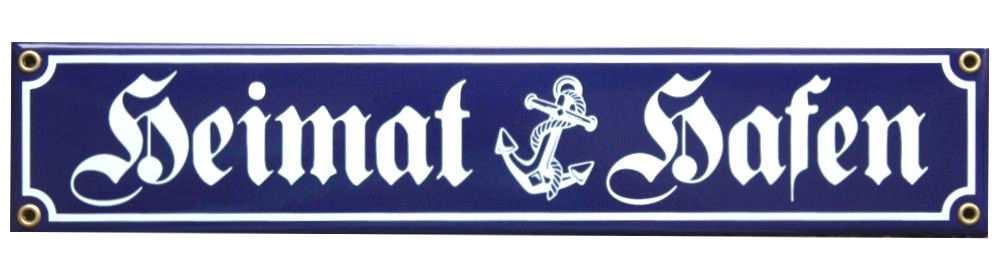 Hochwertiges Emailleschild. Das Schild kann mit 4 Schrauben angeschraubt werden. Die Schraublöcher sind mit Messingringen ausgelegt. Wetterfest, UV - beständig, leicht gewölbt, bombiert. Aufwendige handwerkliche schablonierte Ausführung. Dieses hochwertige Schild wird Ihnen viele Jahre Freude bereiten. Größe: 8 cm x 40 cm
