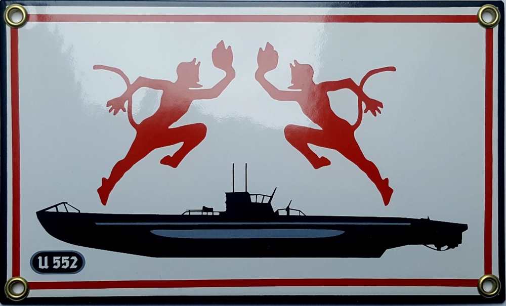 U 552 war ein deutsches U-Boot vom Typ VII C. Es wurde am 4. Dezember 1940 in Dienst gestellt. Kommandant des Bootes war bis September 1942 Kapitänleutnant und Schwerterträger Erich Topp. Hochwertiges Emailleschild. Das Schild kann mit 4 Schrauben angeschraubt werden. Die Schraublöcher sind mit Messingringen ausgelegt. Wetterfest, UV - beständig, leicht gewölbt, bombiert. Aufwendige handwerkliche schablonierte Ausführung. Dieses hochwertige Schild wird Ihnen viele Jahre Freude bereiten. Größe: 12 cm x 20 cm